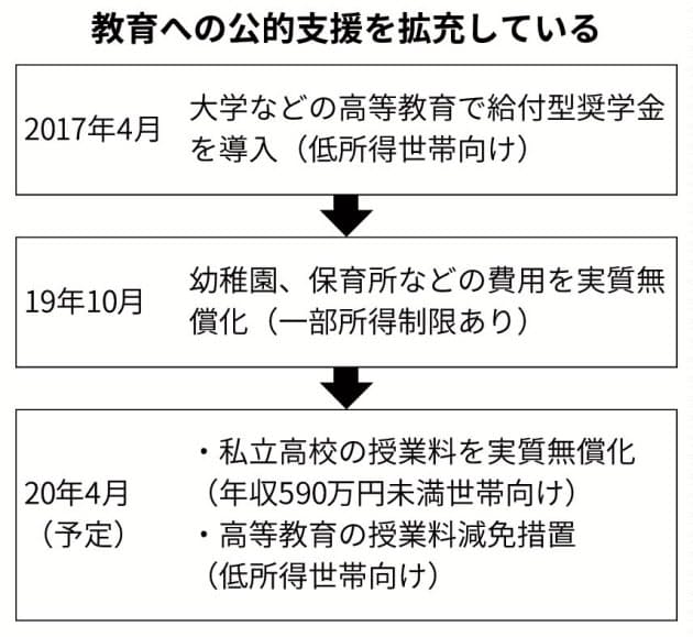文教・科学技術関連の予算は一般会計の5%超を占める。文部科学省の2020年度予算の概算要求は5兆9689億円と、19年度当初予算より12%増えた。20年4月からは大学など高等教育の授業料減免制度、私立高校授業料の実質無償化が始まる見通し。これらは概算要求に金額を示さない「事項要求」になっており、支援対象や金額が予算編成の焦点になる。