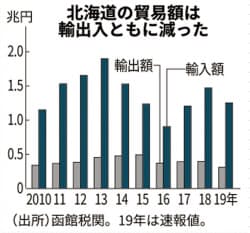 「北海道の貿易は、日本全体に比べ、世界経済や国際情勢に左右される度合いは少ない」(函館税関)。とはいえ、北海道で輸出品生産や港湾・空港における輸入品取扱量が減ることは、地域経済にマイナスに働く。